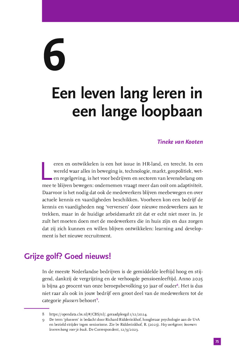 Je leest hoe je daarbij de werk- en levenservaring van oudere collega’s optimaal inzet. Hoe de oudste en jongste generatie op de werkvloer vanuit vertrouwen en wederzijds respect van elkaar gaan leren. Hoe je ervoor zorgt dat medewerkers tijdens hun laatste loopbaanfase blijven sprankelen. Van: ‘Hoe krijg ik ‘ze’ in hemelsnaam mee?’ naar: ‘Hoe gaan we samen nog veel verder komen?’